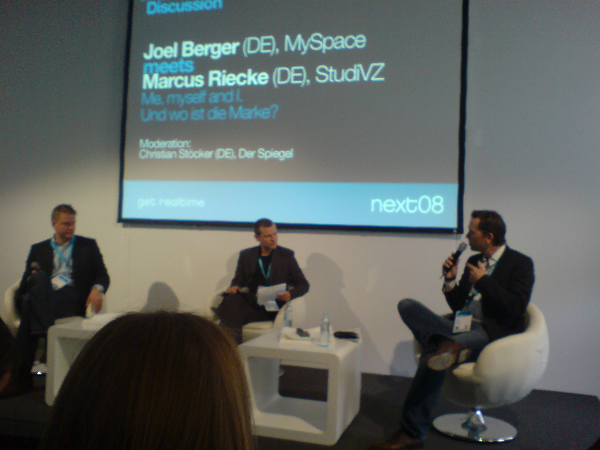 Marcus Riecke von StudiVZ zum Beispiel räumt ein, dass die Marke zwar durch die Userführung und die daraus resultierende „Userexpirience“ ein wenig gesteuert werden kann, aber darüber hinaus für die User natürlich die Präsenz des eigenen Freundeskreis die größere Rolle spielt. Riecke steigert sich in die These: „Die Marke wird von den Usern gemacht!“ Dem kann Joel Berger von Myspace nur beipflichten formuliert aber um: „Die Marke kommt von uns, das Produkt vom Nutzer.“